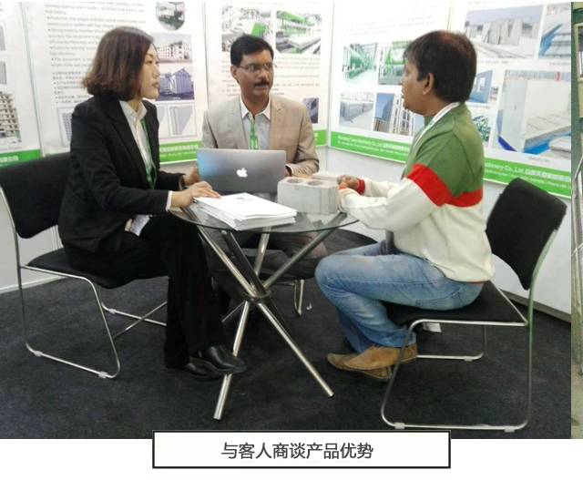 展会期间,天意机械一经亮相就受到了广泛关注,前来咨询客人接连不绝,天意机械国际贸易部董经理热情为来访客人介绍天意建筑建材装备的在本地市场应用优势。