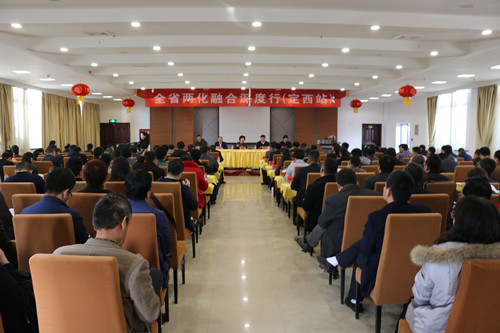 两化融合深度行(定西站)活动是我委今年推动两化融合工作的重要举措之一,省工信委副地级专员刘丽娜出席并讲话,漳县县委书记党建中致欢迎辞,市工信委副主任王万平主持会议。省工信委有关部门负责人、市工信委副主任张文斌,各县区工信局、省市县通信运营商及全市重点企业负责人,共计140余人出席了会议。